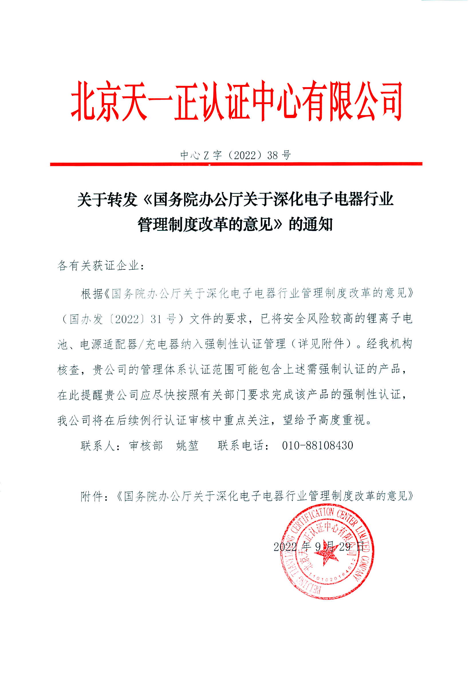 中心Z字(2022)38號(hào)關(guān)于轉(zhuǎn)發(fā)《國(guó)務(wù)院辦公廳關(guān)于深化電子電器行業(yè)管理制度改革的意見(jiàn)》的通知發(fā)表時(shí)間:2022年10月11日